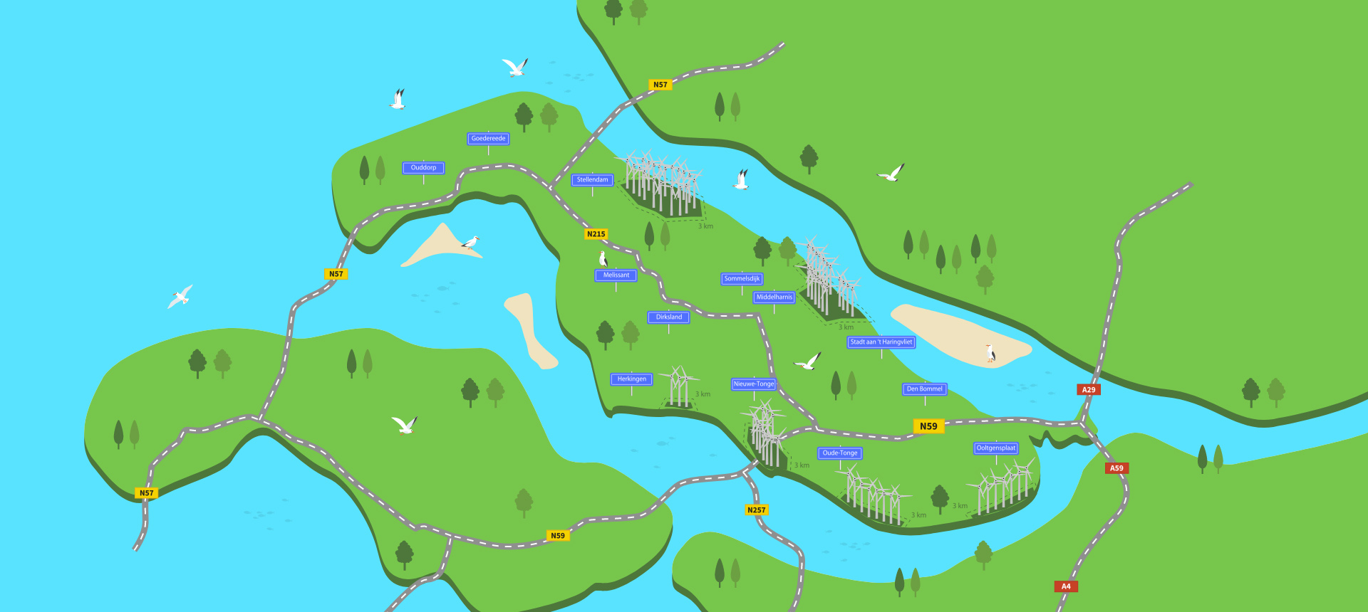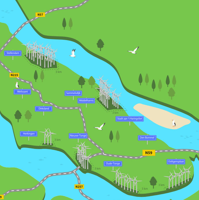 Veel windparken op Goeree-Overflakkee dragen bij aan Windfonds Goeree-Overflakkee. Op de kaart kunt u een nummer aanklikken en zien of dit windpark bij gaat dragen aan Windfonds Goeree-Overflakkee, hoeveel en vanaf wanneer. Een aantal windparken dragen niet af aan windfonds Goeree-Overflakkee, zij hebben een eigen windfonds of kennen een andere manier van afdracht aan de omgeving.